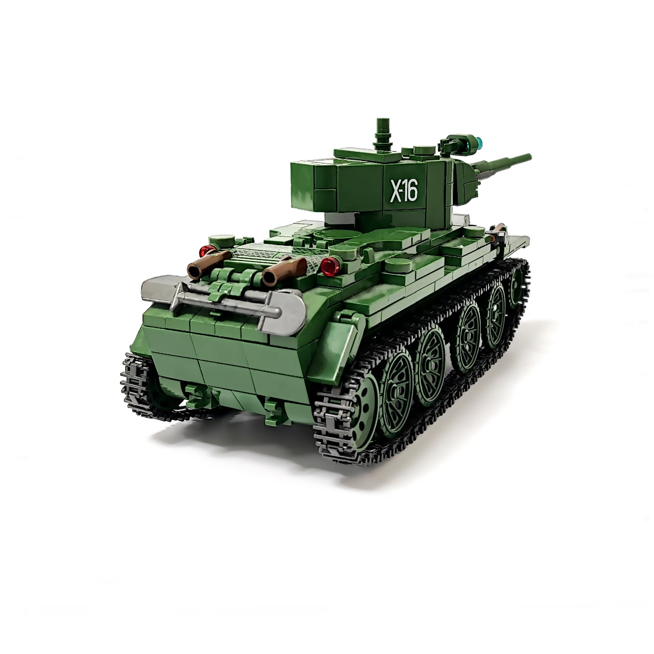 675PCSのブロックを組み立てると、写真のようなBT-7(初期型)が完成します。