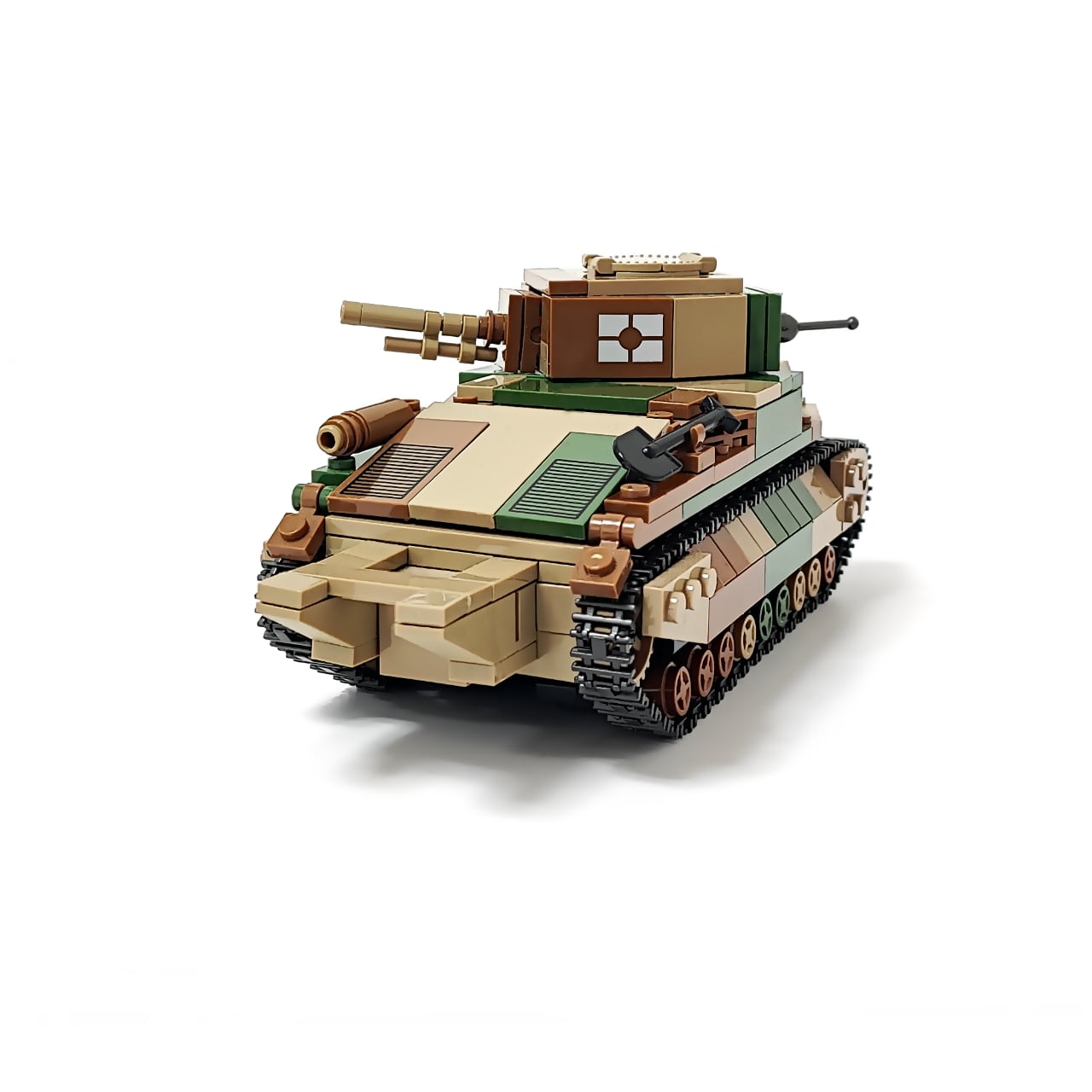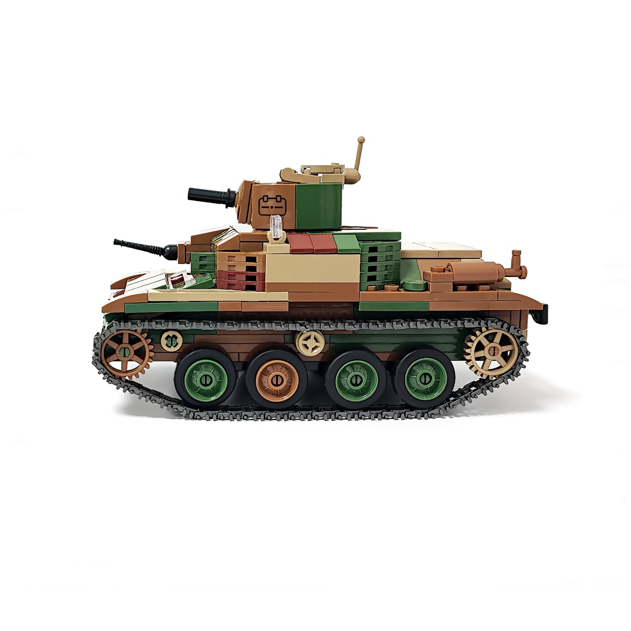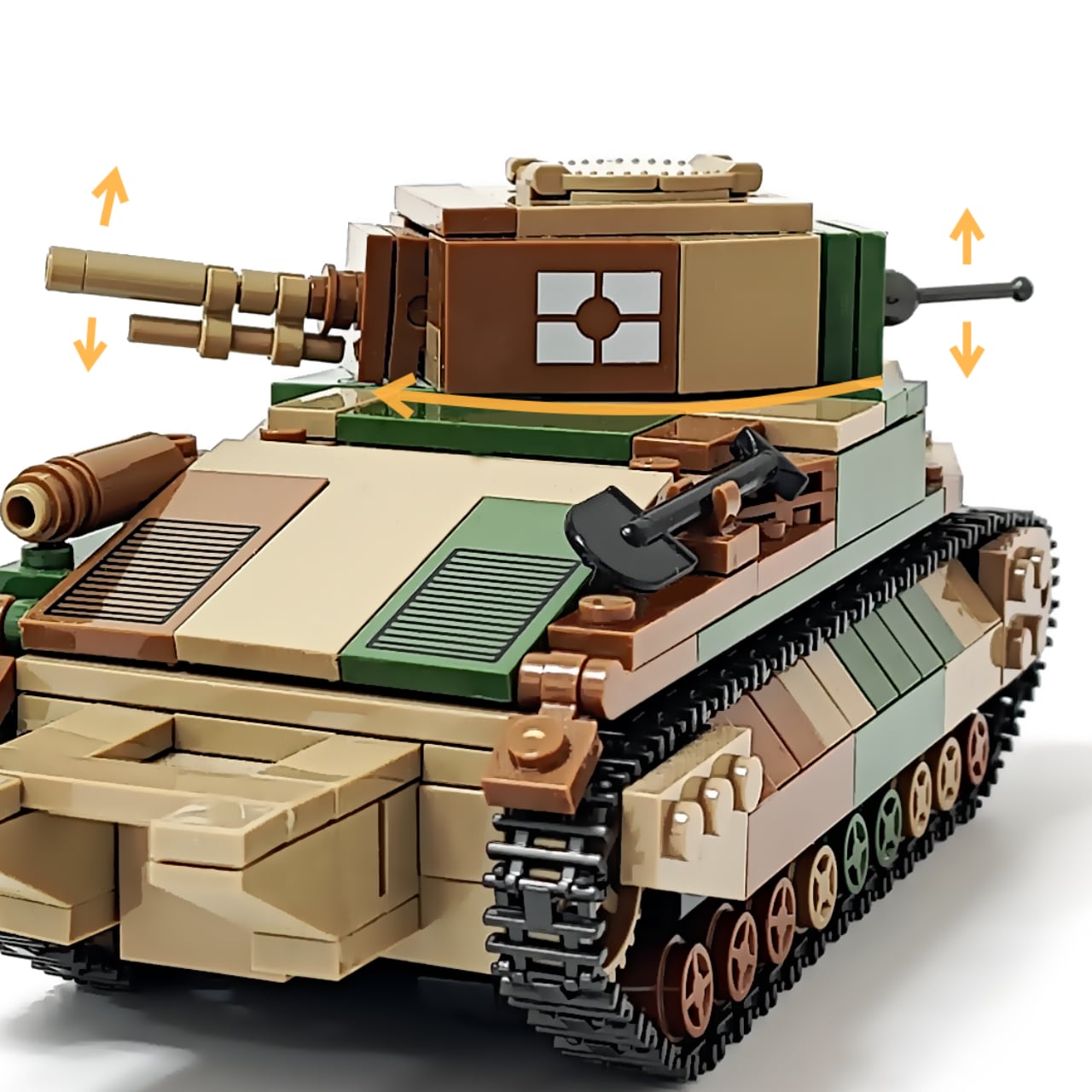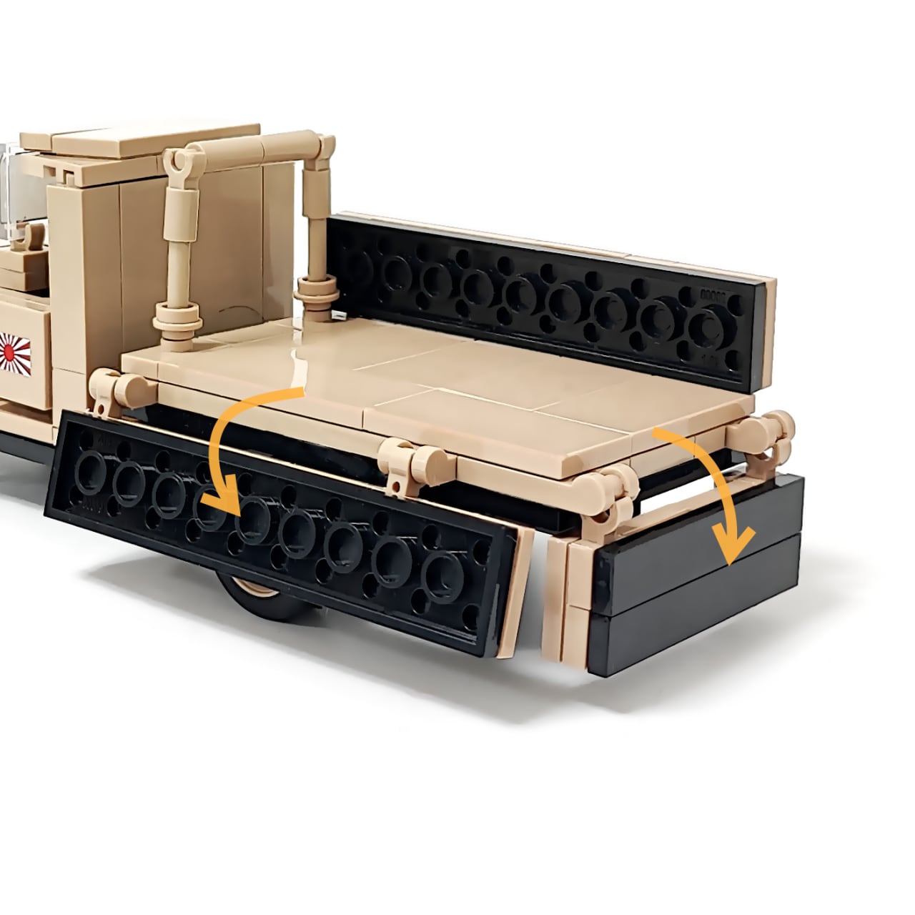 八九式中戦車、528PCS、九二式重装甲車、403PCS、九八式四屯牽引車シケ、462PCS、日産180トラック、278PCSのブロックを組み立てると、写真のようなブロック戦車が完成します。
