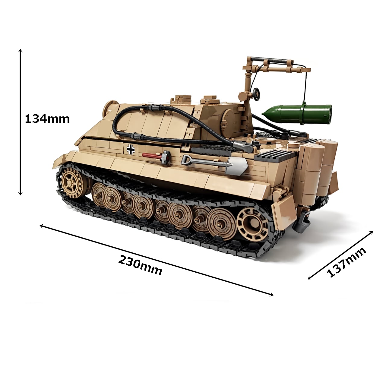 1394PCSのブロックを組み立てると、写真のようなシュトルムティーガー が完成します。