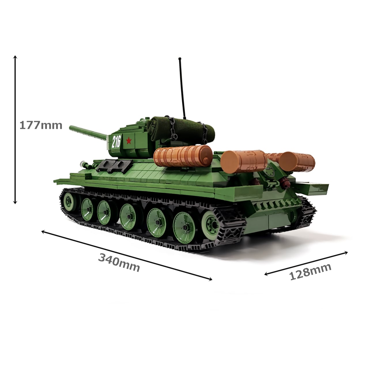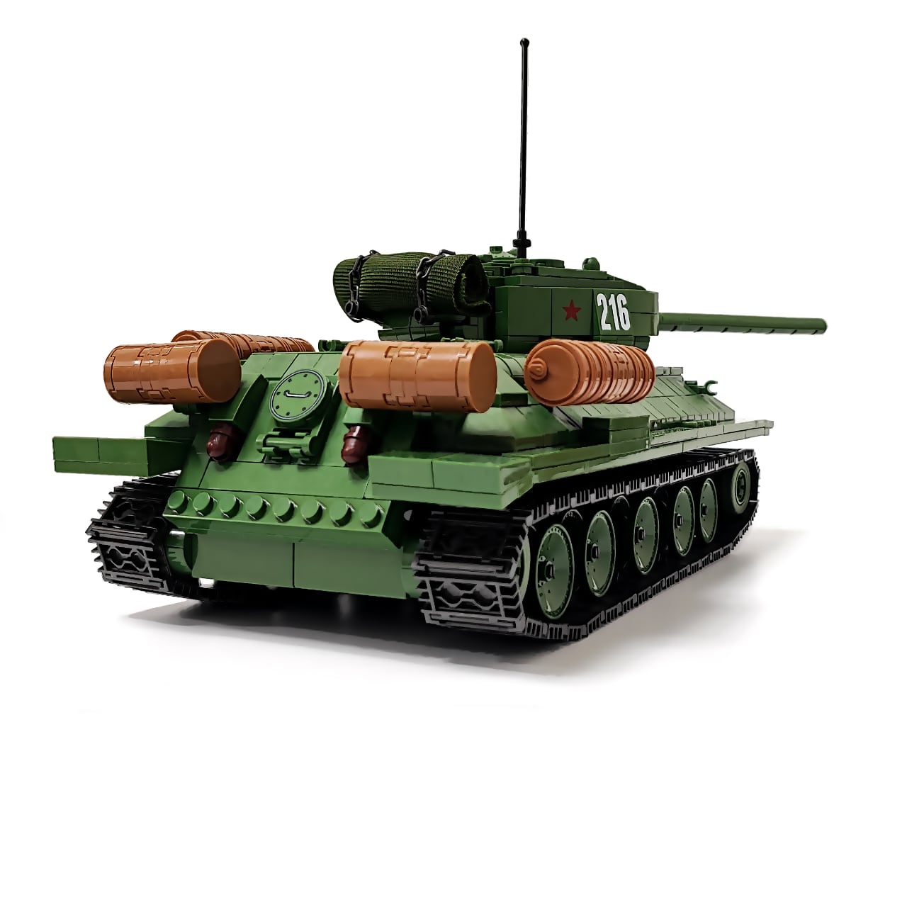 1137PCSのブロックを組み立てると、写真のようなT-34 85が完成します。