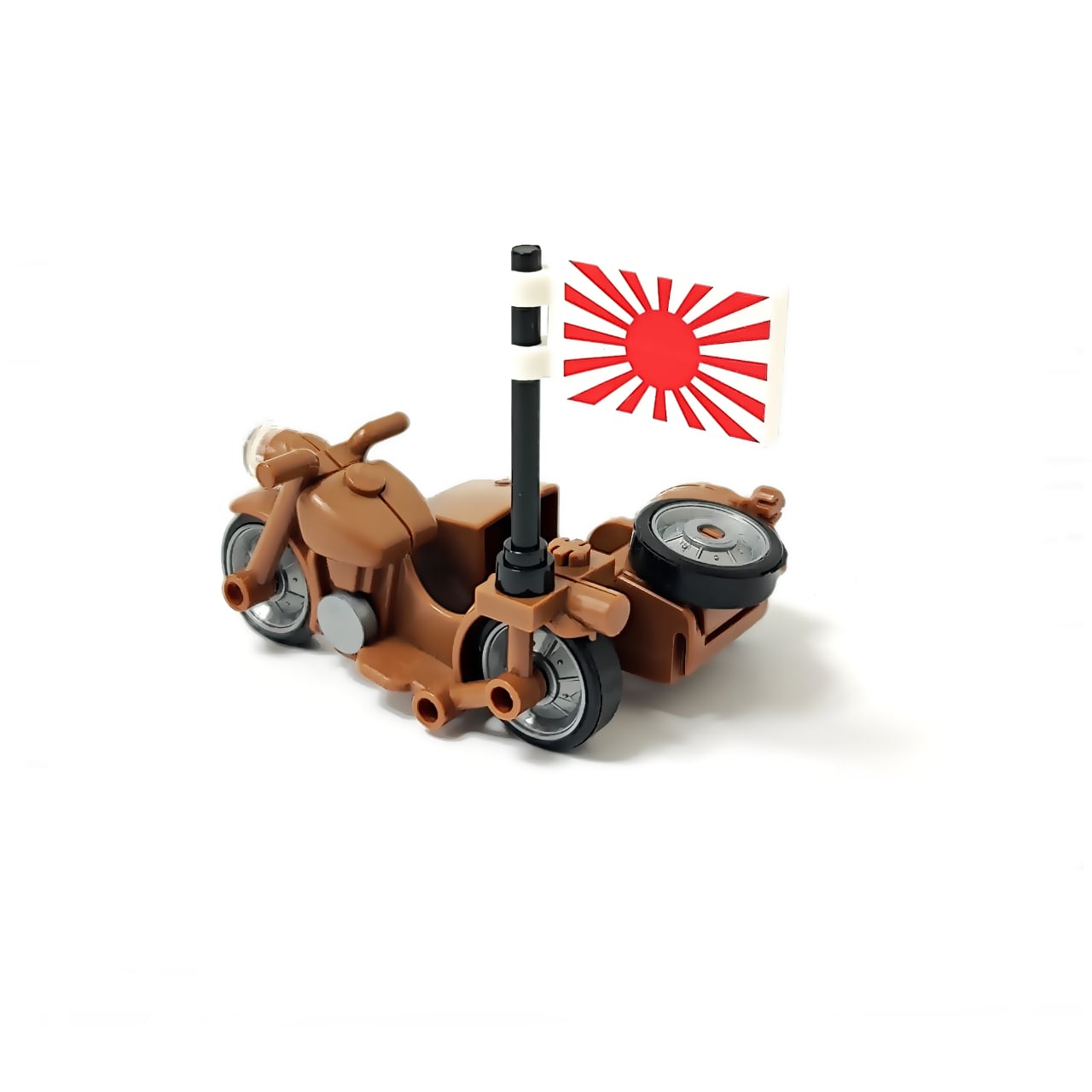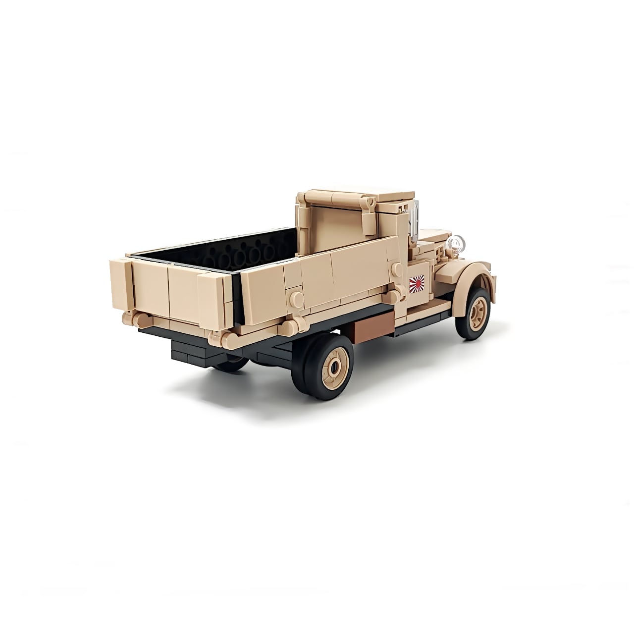278PCSのブロックを組み立てると、写真のような日産180トラックと九七式側車付自動二輪が完成します。
