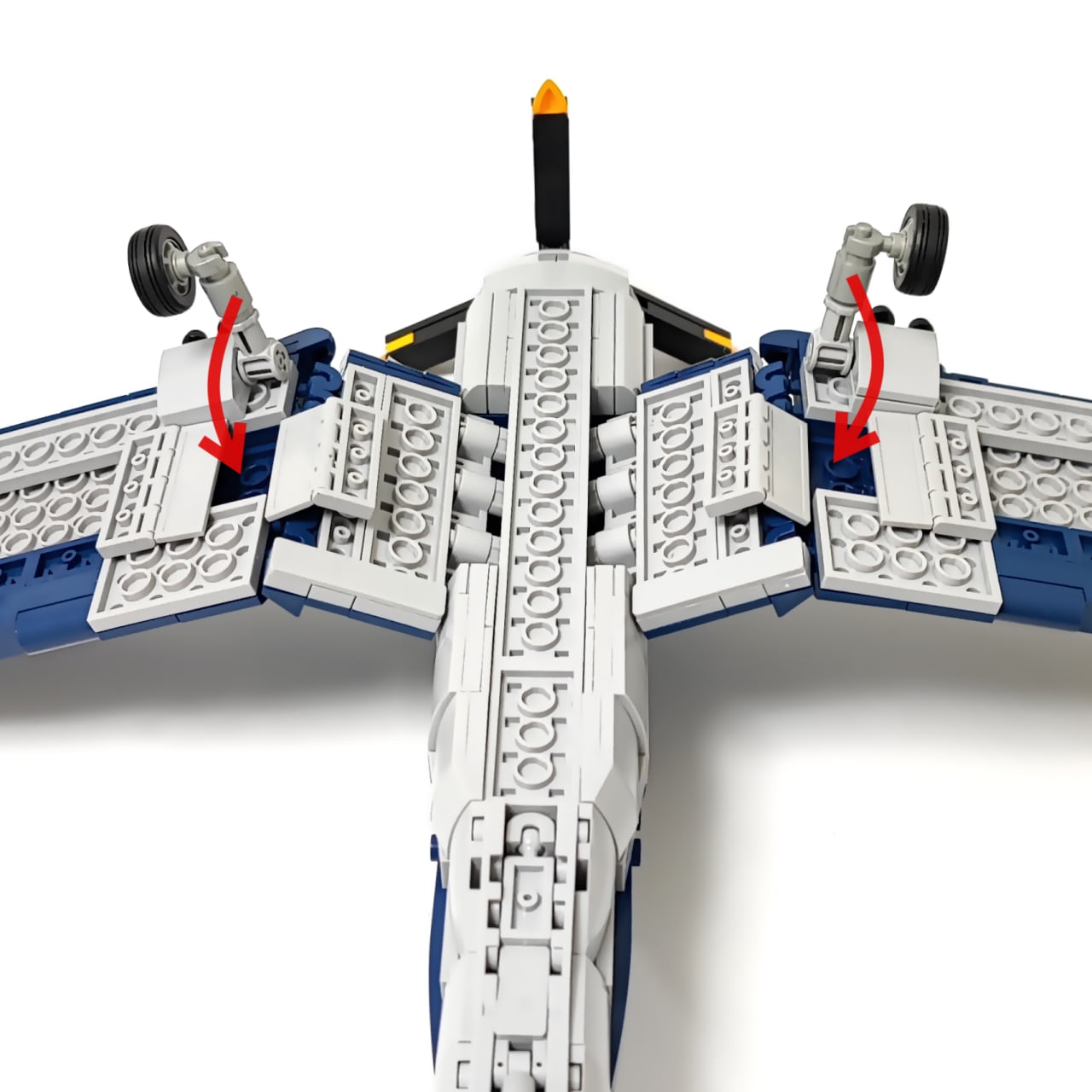 ブロック戦闘機でありながら、この逆ガルウィングが再現可能、さらに車輪の収納も出来ます