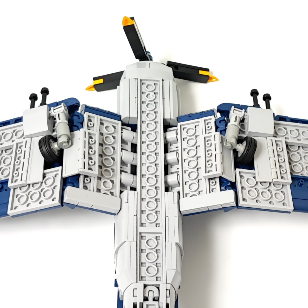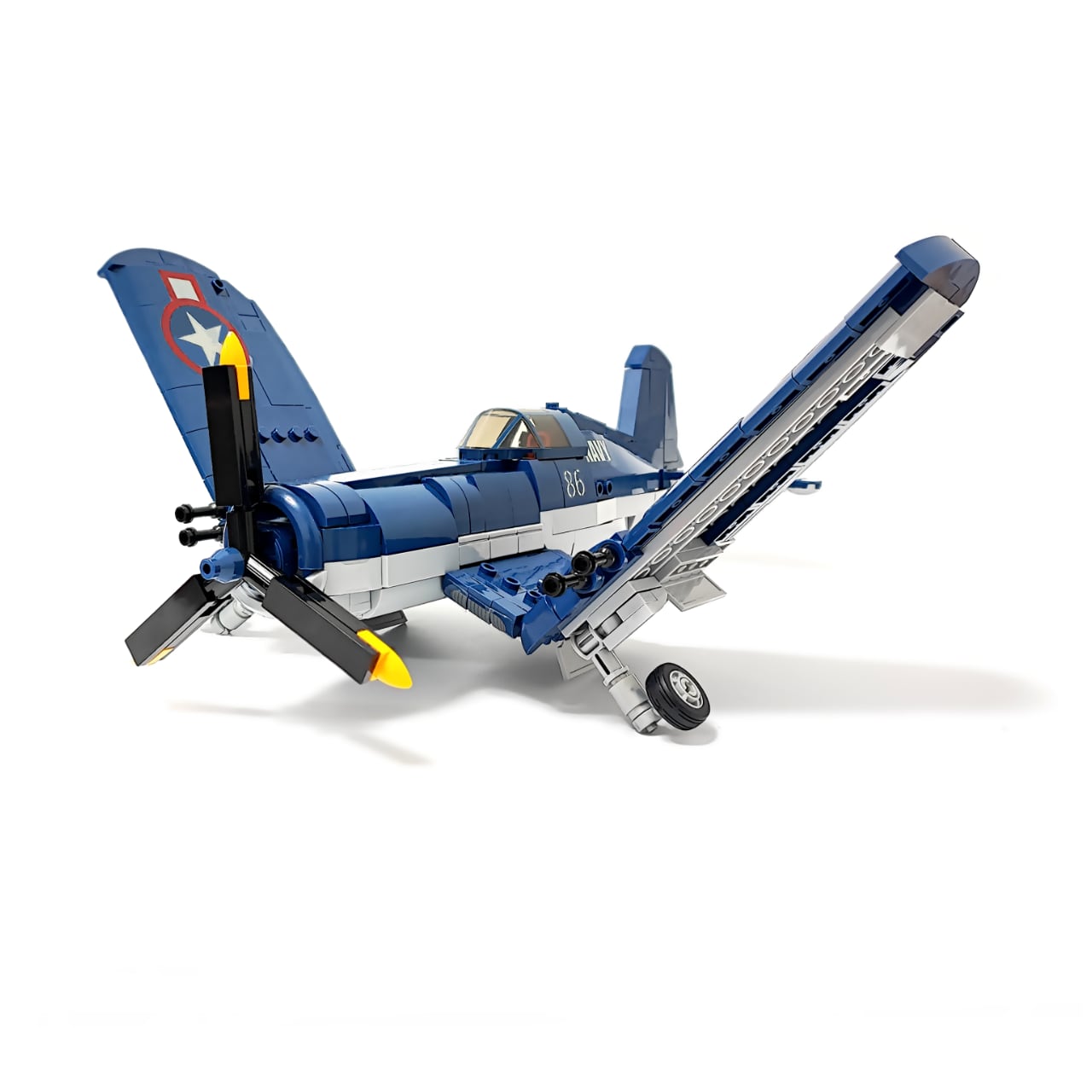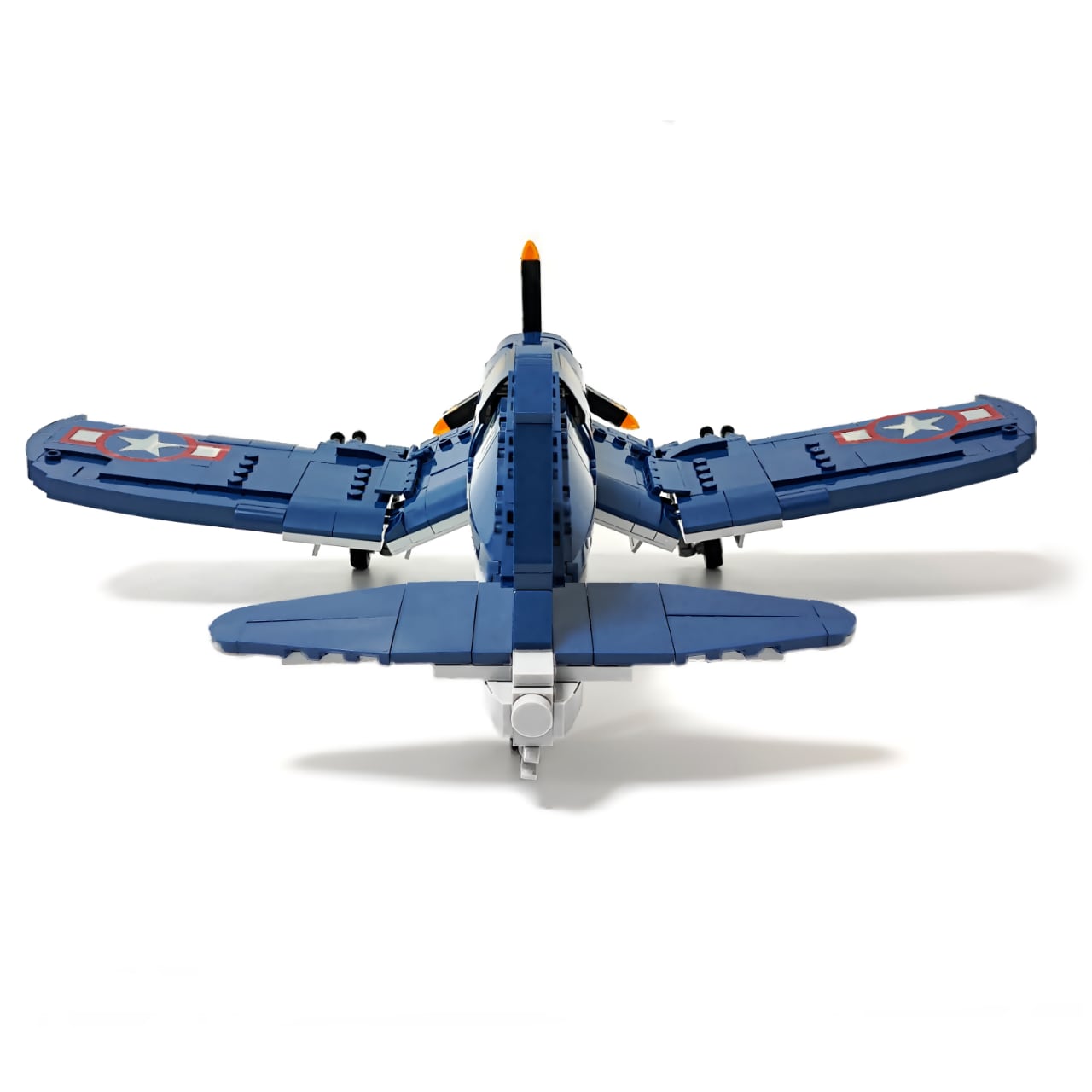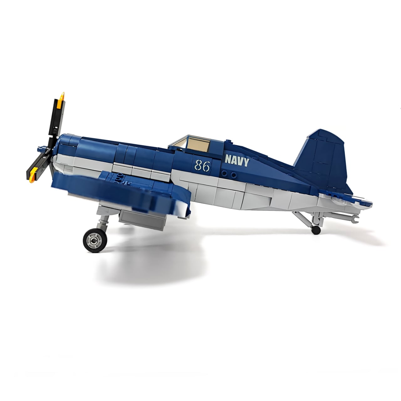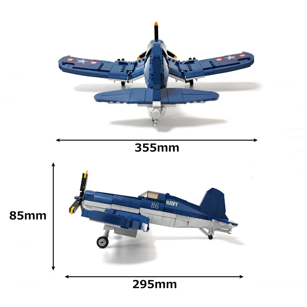 550PCSのブロックを組み立てると、写真のようなF4Uコルセアが完成します。