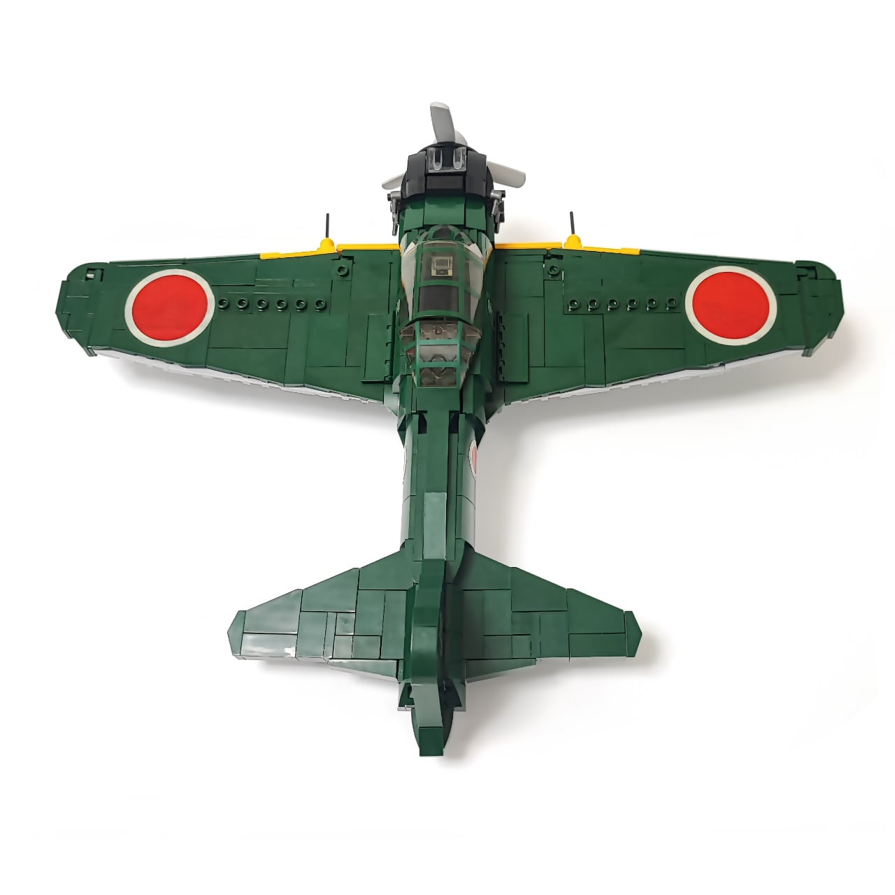 563PCSのブロックを組み立てると、写真のような零戦五二型が完成します。