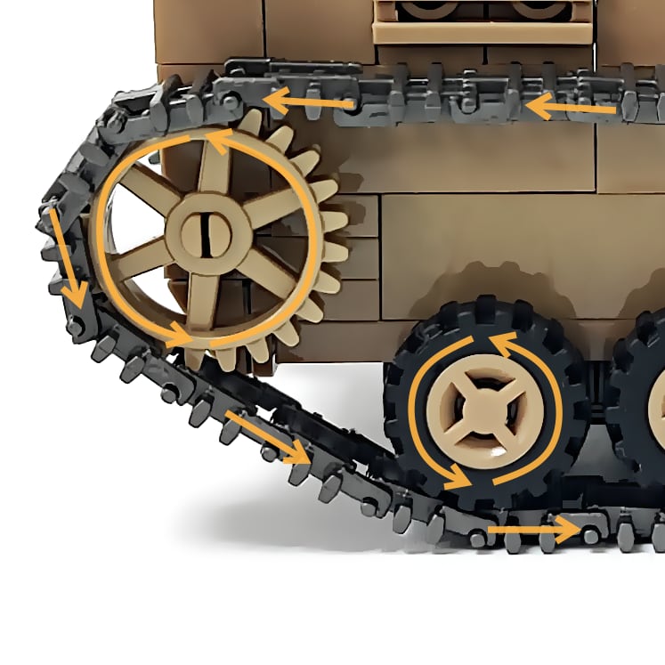 462PCSのブロックを組み立てると、写真のような九八式4屯牽引車と機動90式野砲が完成します。