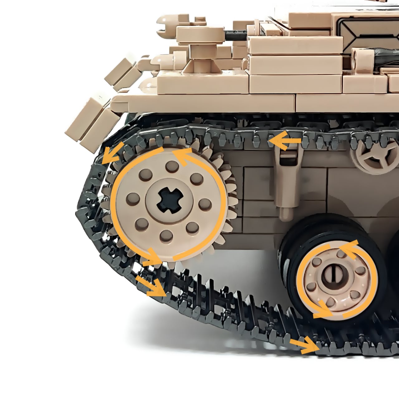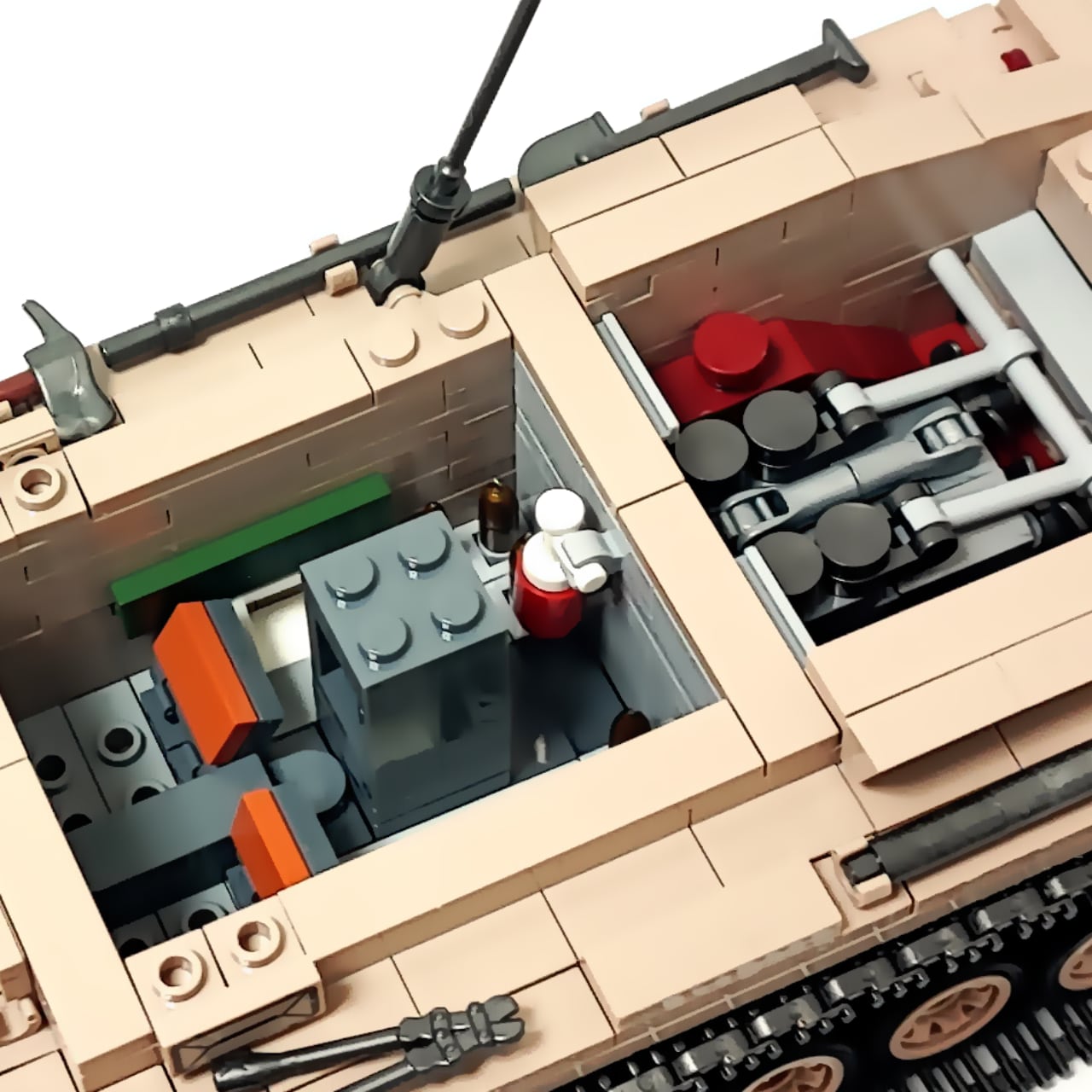 959PCSのブロックを組み立てると、写真のようなⅢ号戦車が完成します。