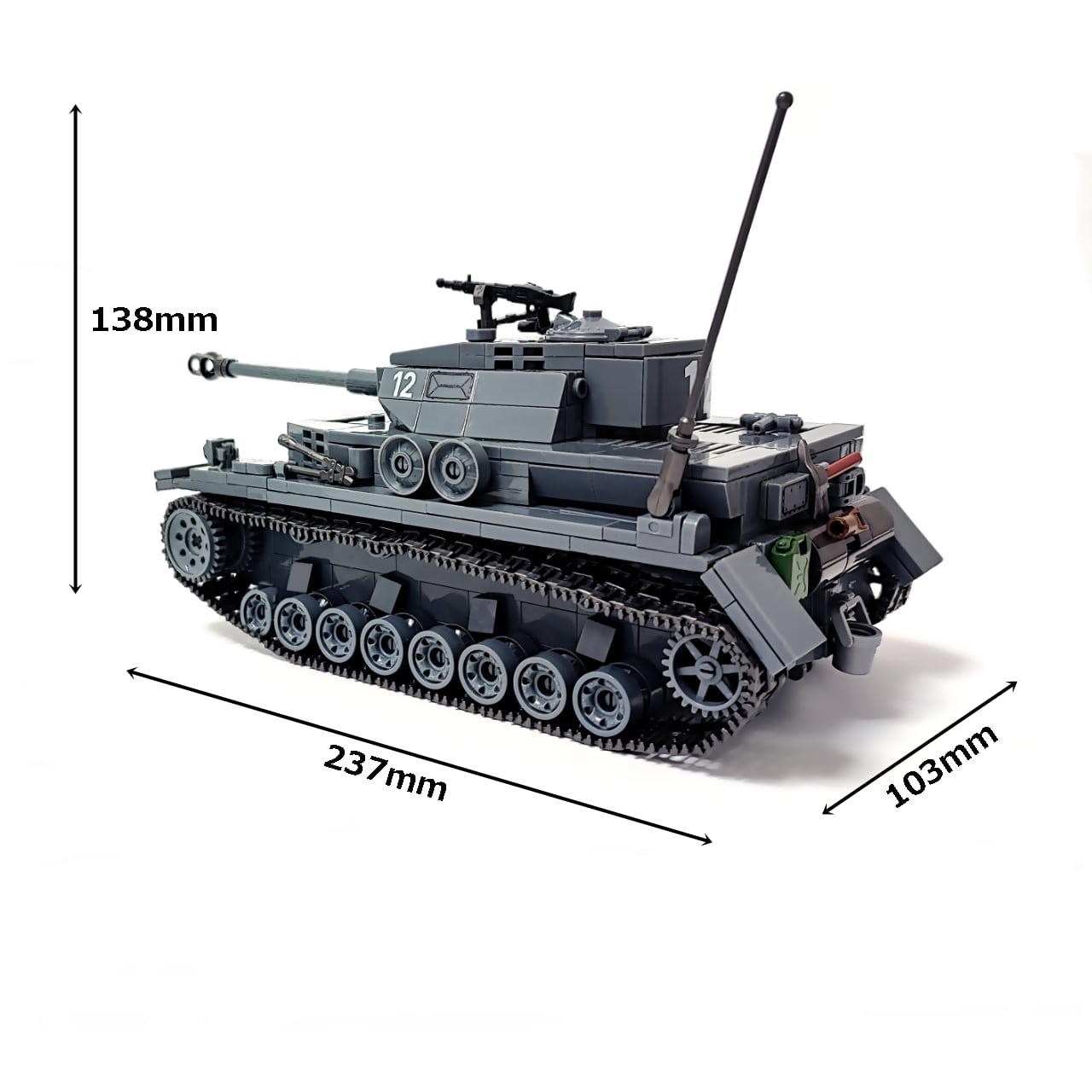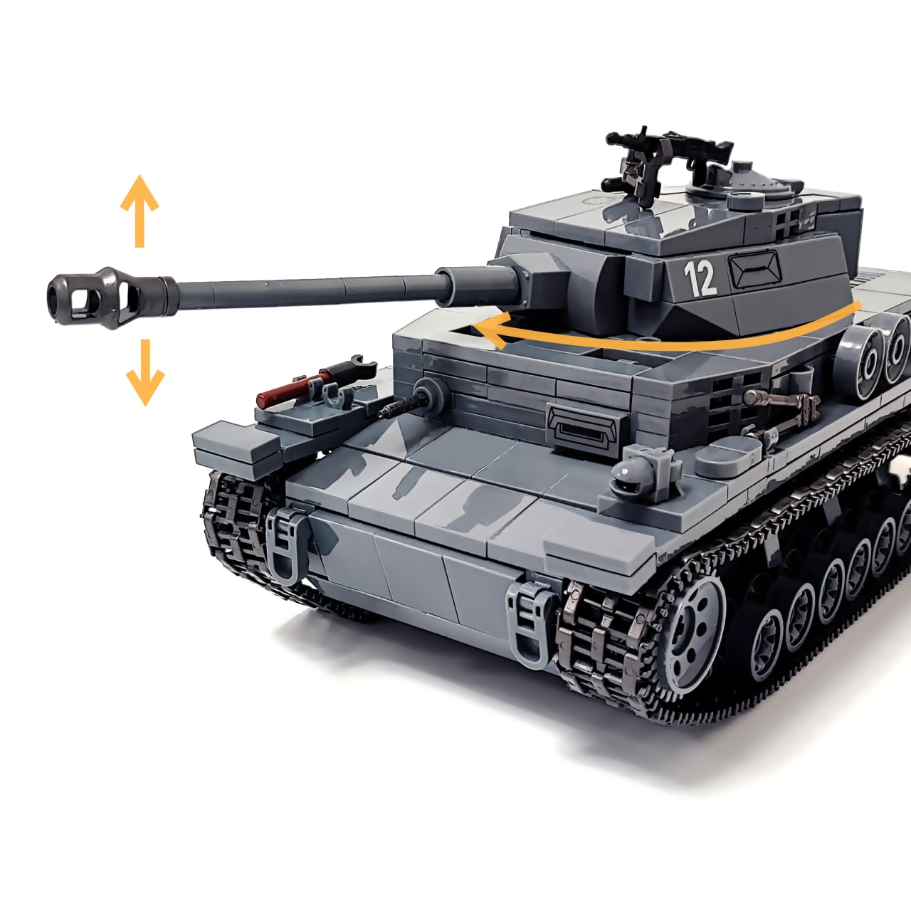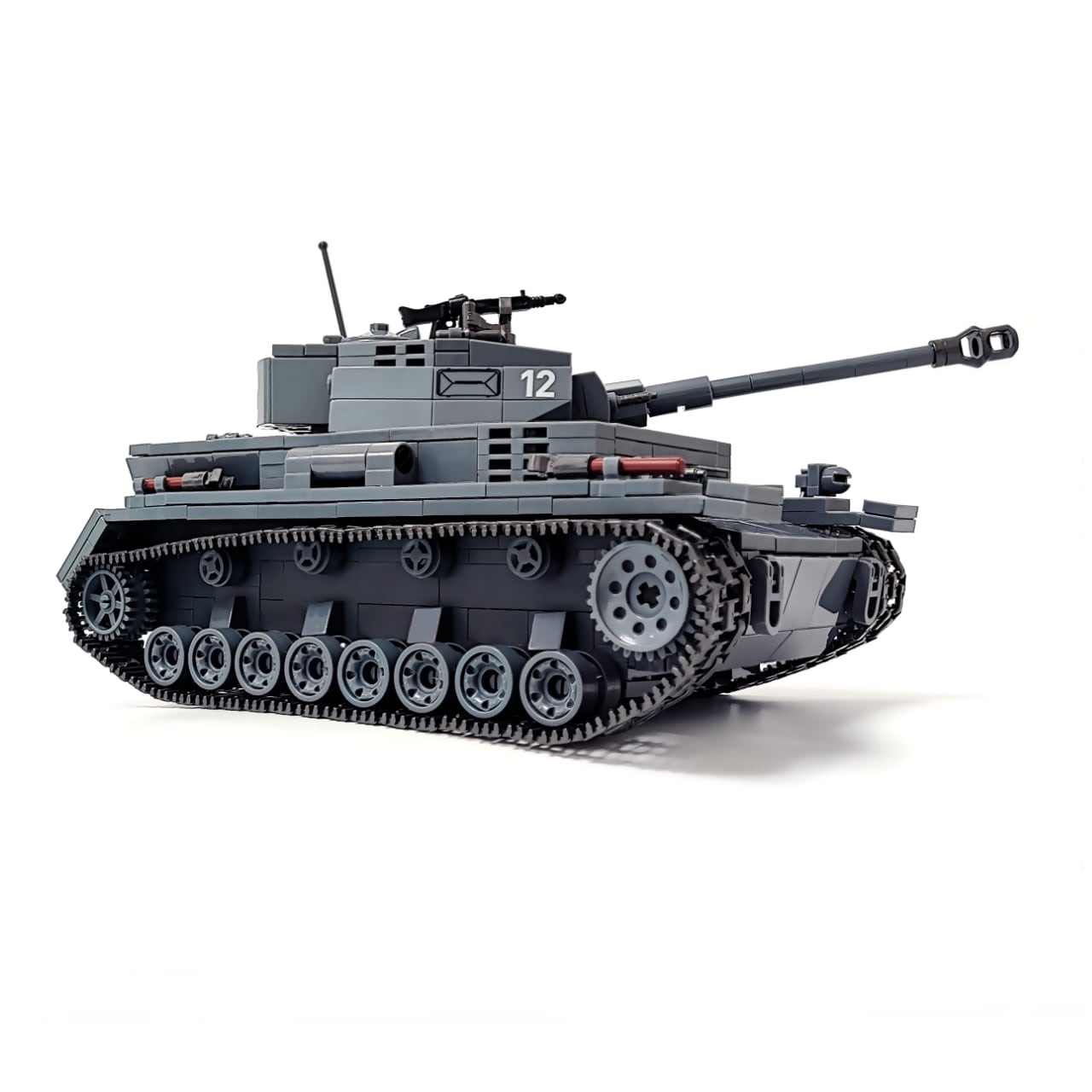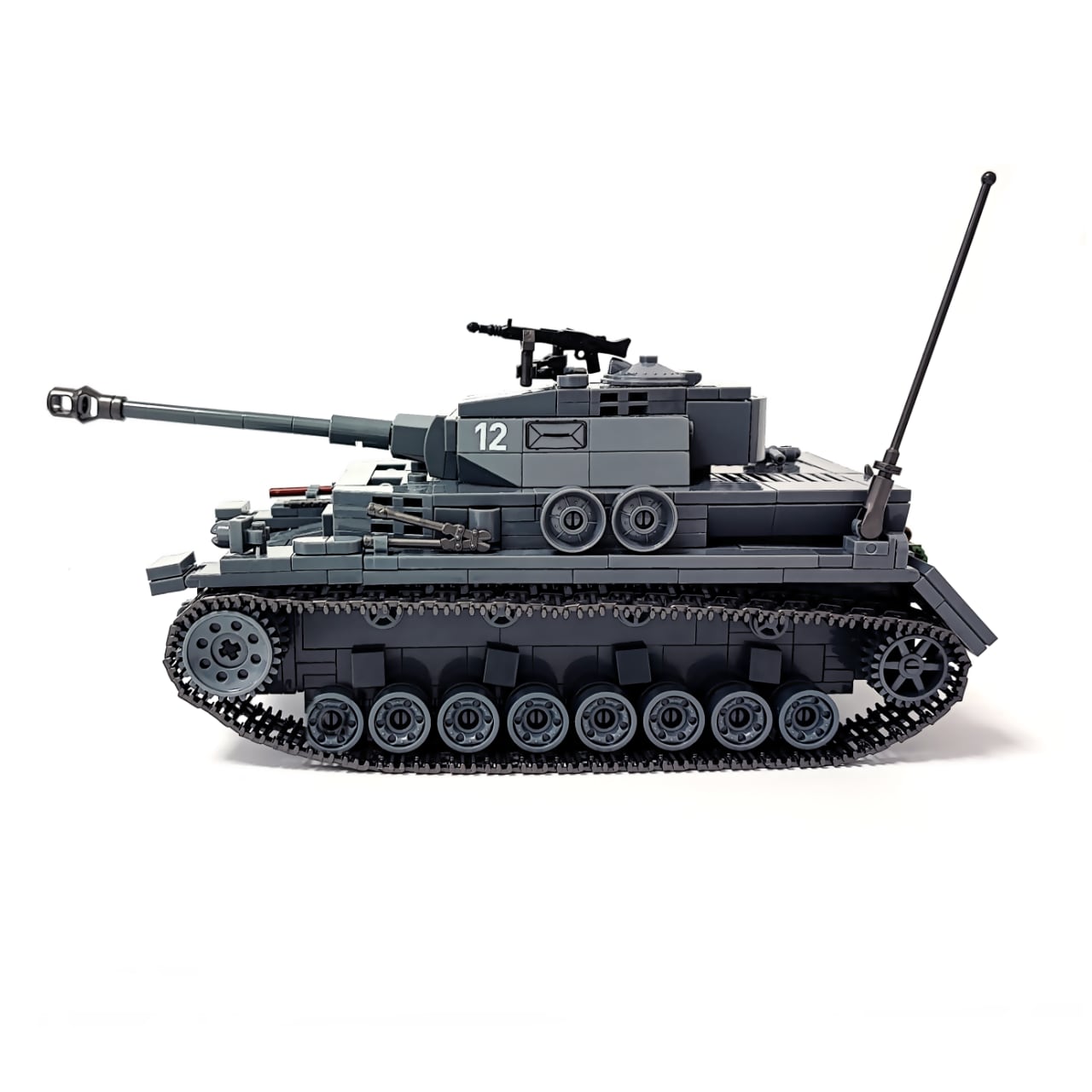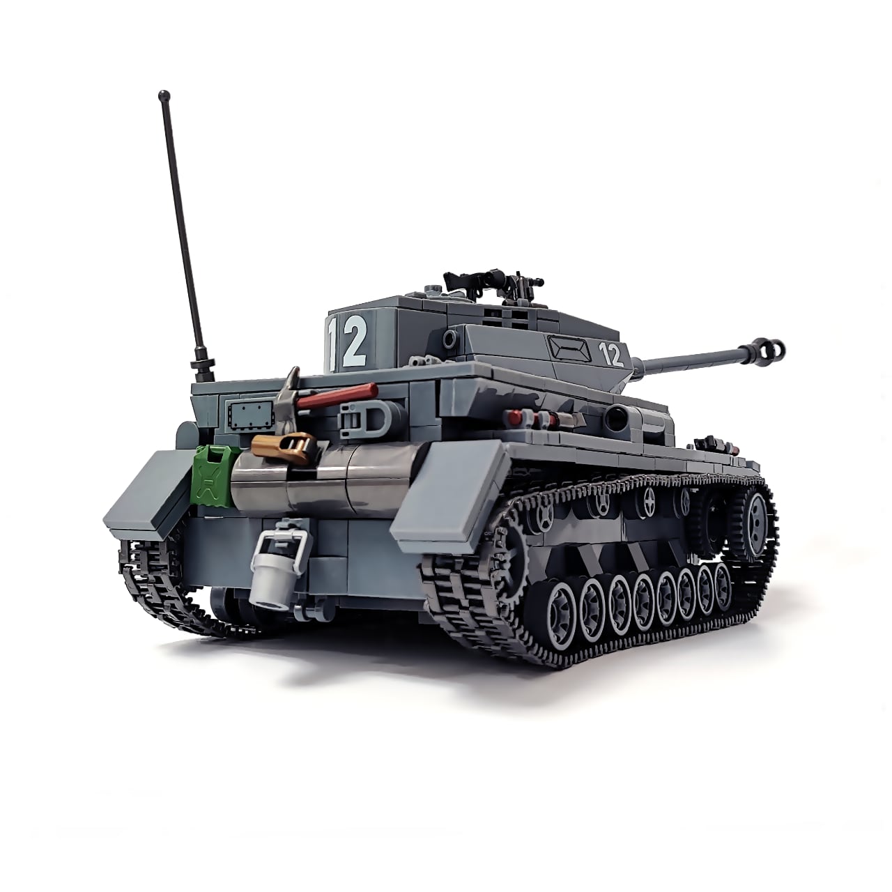 985PCSのブロックを組み立てると、写真のようなⅣ号戦車が完成します。